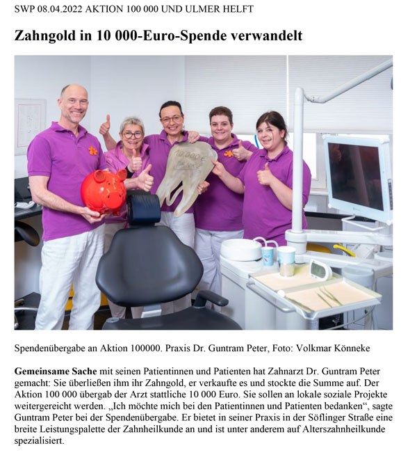 - 10.000,- € für die Aktion 100 000 – Ulmer helft.